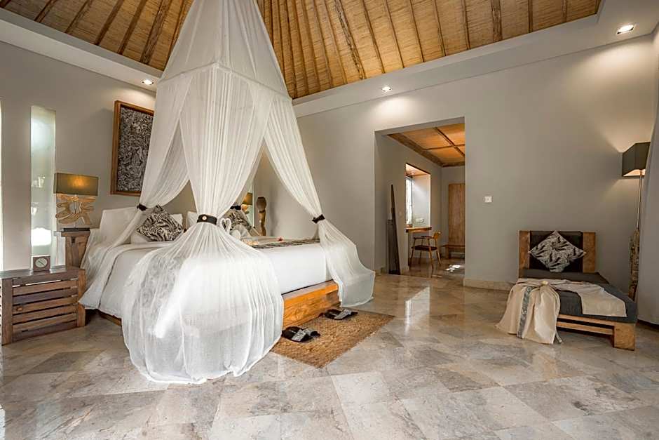 Located within a mansion, this room features a private veranda, an private bathroom with a bathtub and access to a shared pool.
